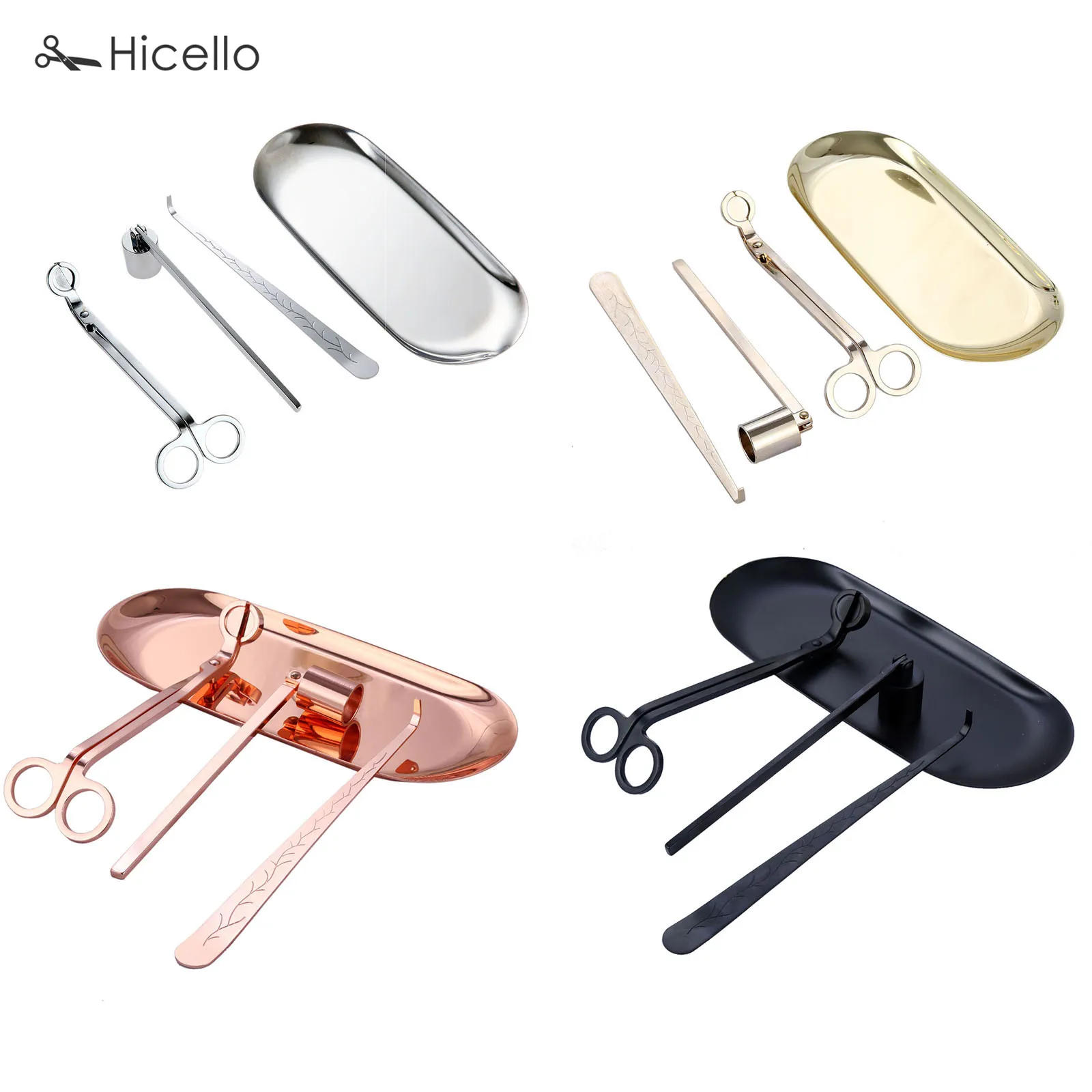 4 шт./компл. лампы в форме свечи снаффер триммер крюк лоток класса люкс Нержавеющая сталь аксессуар держатель для фитиля ножницы для украшения дома Роза цвета: золотистый, серебристый