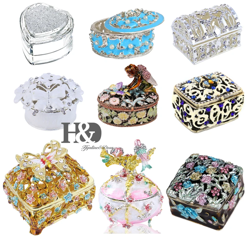 H & D Винтаж ручной работы эмаль безделушки коробки для хранения ювелирных изделий Органайзер Коробка Цветочный металлический чехол Рождест...