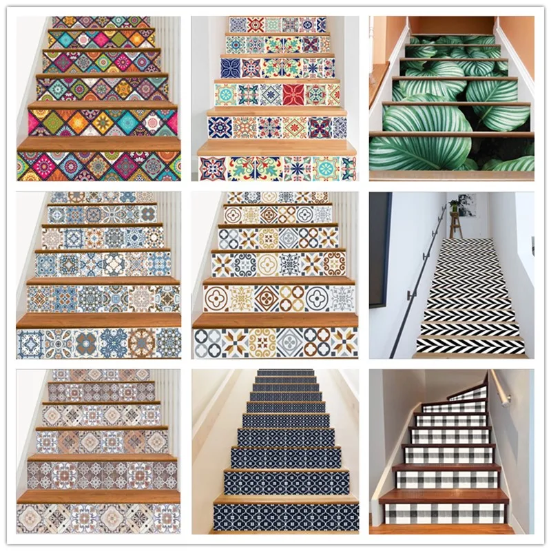 6 шт. Съемная наклейка "Лестница" шаг самоклеющиеся керамические плитки ПВХ лестницы обои наклейка виниловая лестница украшение дома 18x100 см
