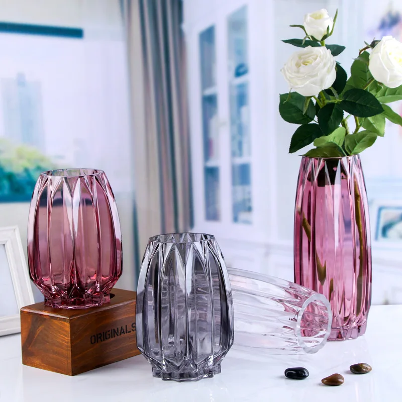 Простая Геометрическая Европейская Вертикальная стеклянная ваза прозрачная цветная Современная Ваза Лилия гостиная Цветочная композиция