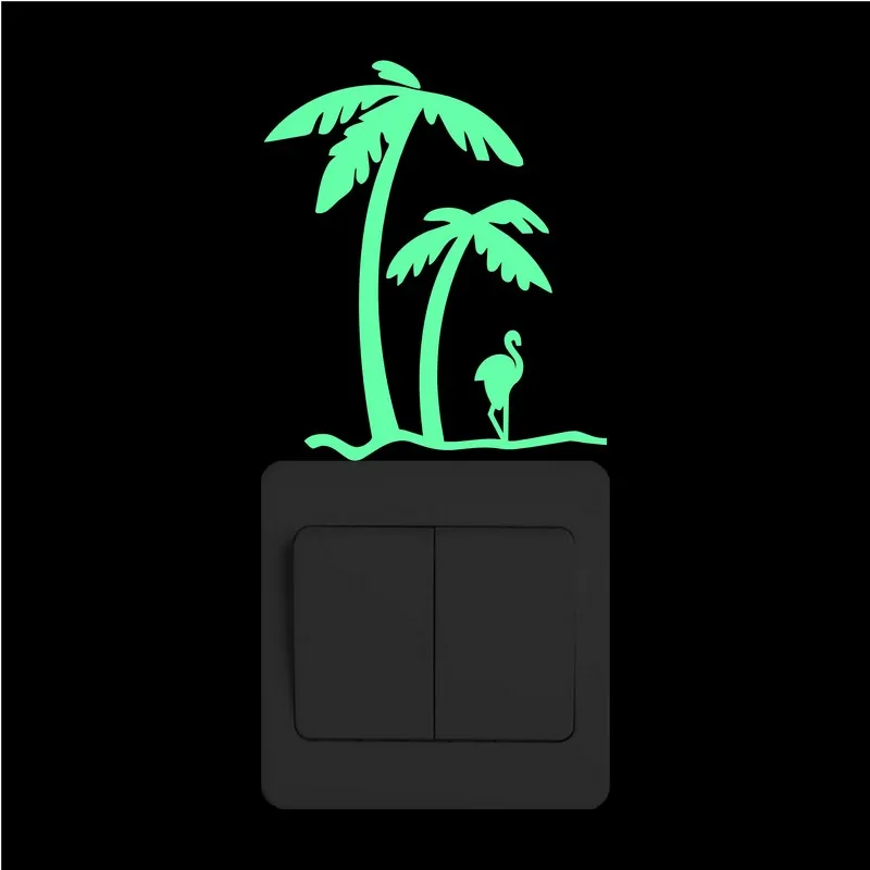 C пальмами, светлый Сменные наклейки Фламинго светящиеся мультипликационные наклейки животных светящиеся настенные наклейки для детской к...
