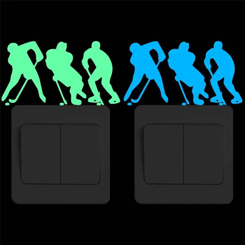 Хоккеистов светится в темноте Сменные наклейки Творческий световой спортивные стены винила Стикеры Home Decor Дети Спальня DIY Наклейка