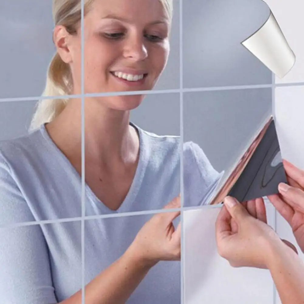 9 шт. DIY квадратная Наклейка на стену с зеркальным эффектом, мозаичная декорация для окна комнаты, кухни, гостиной, кухни, телевизора, декорации