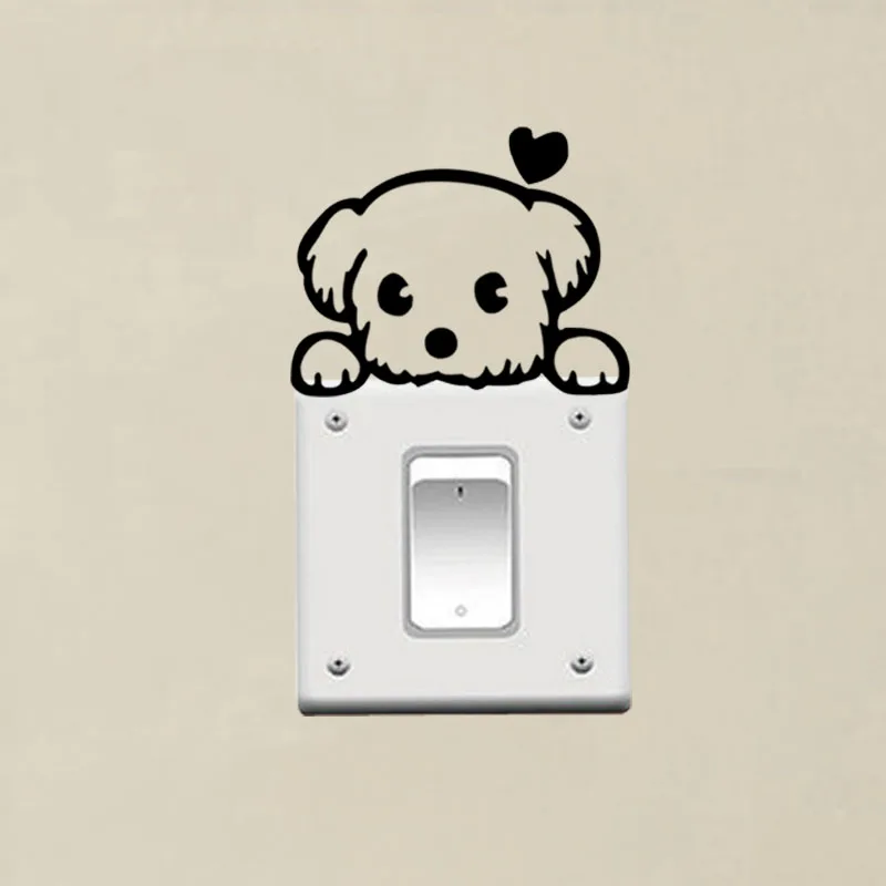 Черный винил наклейки на стены переключатель Декор Стикеры мультфильм собака Стикеры 3ss0021
