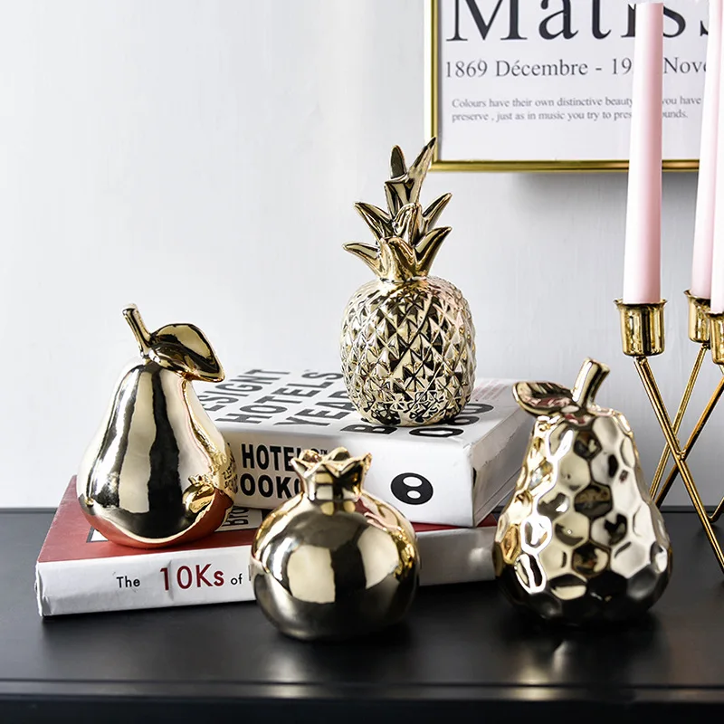 Скандинавские креативные золотые фрукты, орнамент из смолы, сидение для дома, роскошное Гальванопокрытие, керамическая сосна, яблоко, украшение для дома