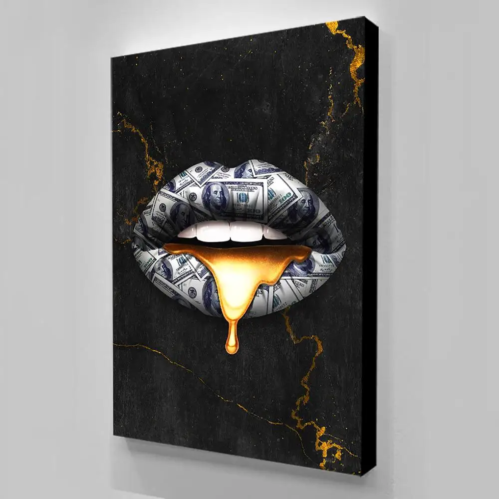 Украшение для дома в скандинавском стиле, холст, живопись, деньги, губы, доллар, плакат, печать, настенные картины, модульная рамка для гостиной