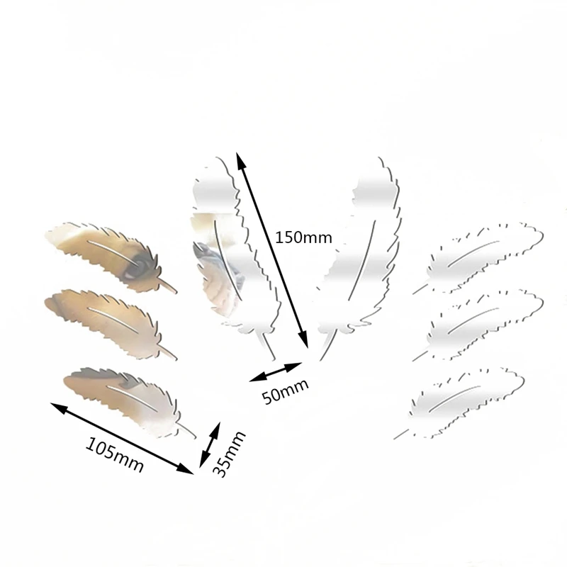 8 шт., 3D зеркальные настенные наклейки с перьями, домашний декор, художественная наклейка, настенные Стикеры, наклейки, наклейки для детской ...