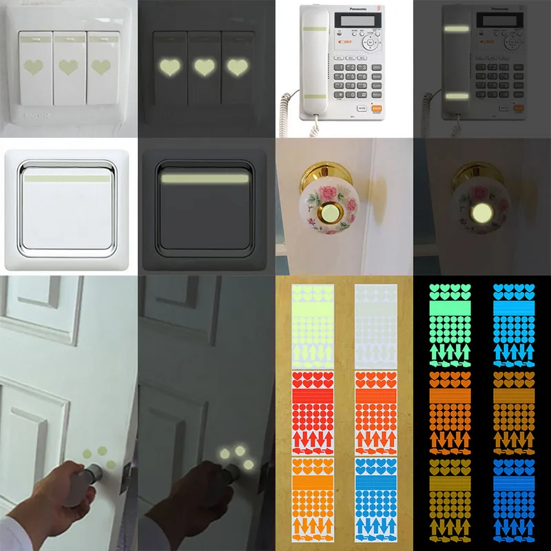 Световой полосы Сердце Круг Стрелка палец Стикеры светятся в темноте настенный Декор Надписи Door телефонный коммутатор украшения DIY Стикеры