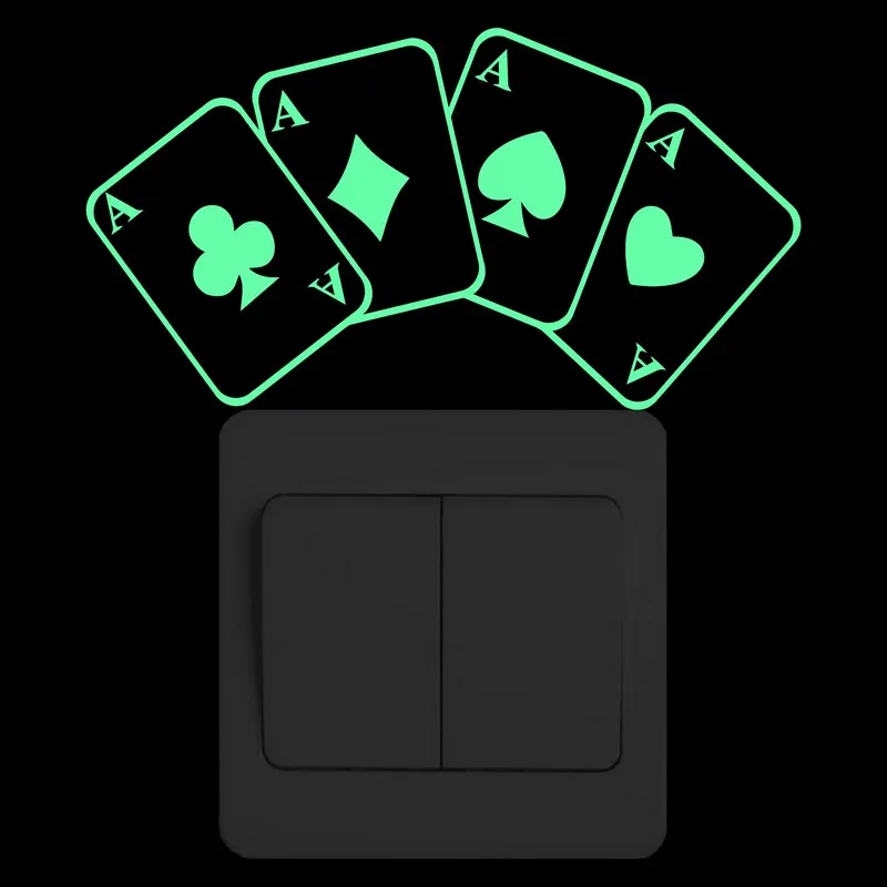 Четыре туза покер светится в темноте Переключатель Наклейка на стену ванной комнаты светящаяся наклейка для туалета украшение для гостино...
