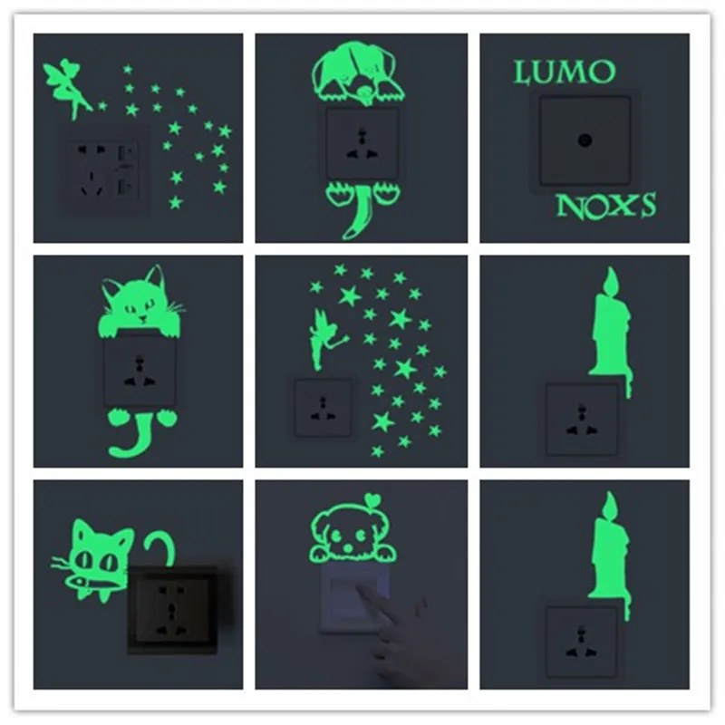% 1 шт. новый световой мультфильм Кот Собака Сделай Сам переключатель Стикеры стены Стикеры украшения люминесцентные Гостиная детская комна...