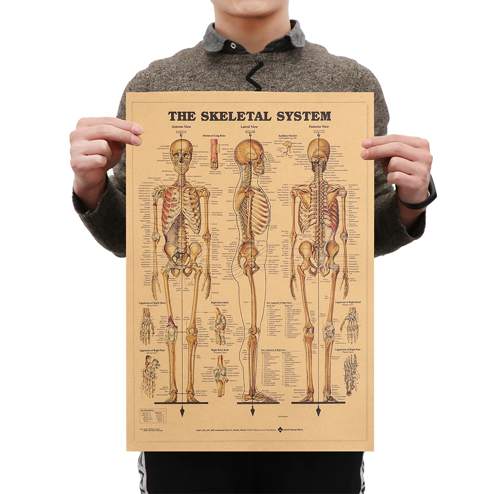 1 шт. крафт-бумага структура тела ретро постер винтажный Фреска домашний декор система скелета Наклейка на стену Скелет анатомический плака...