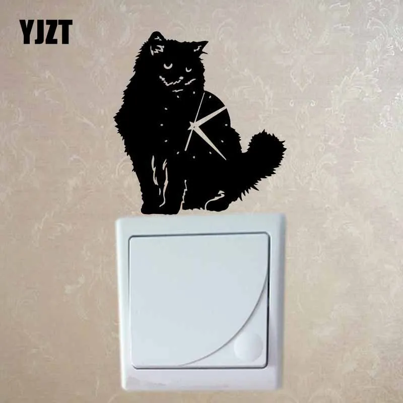 YJZT мультфильм часы кошка настенные Сменные наклейки Животные виниловая наклейка Детская комната Декор Искусство Мода S19-0050