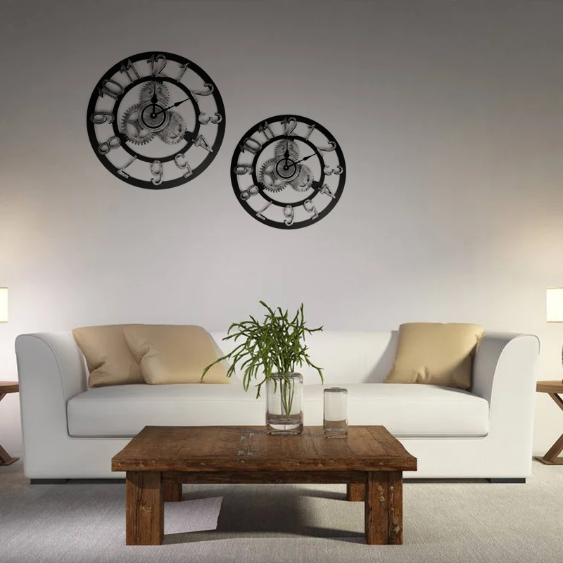 Европейские ретро шестерни настенные часы декоративные Творческий промышленный стиль деревянный трехмерный дом гостиная Бар Настенные Ча...