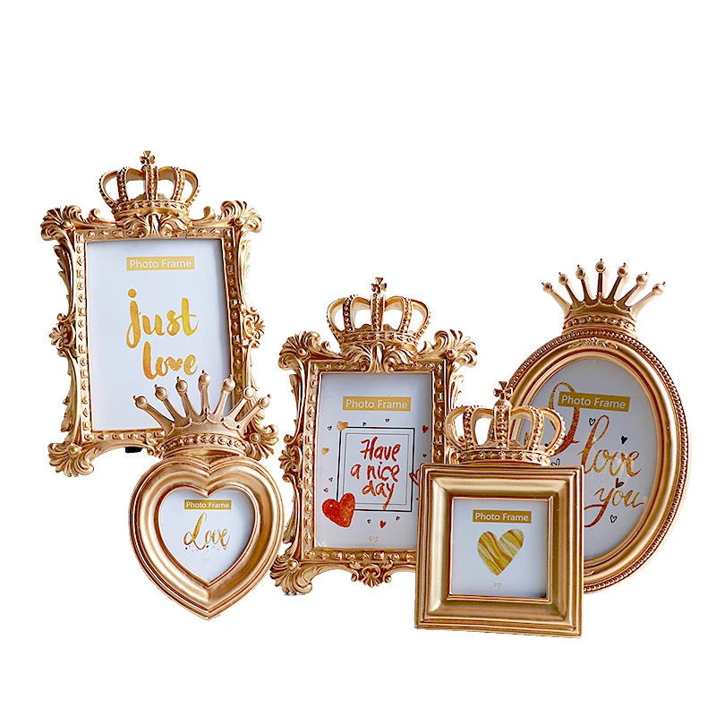 Винтаж резные Золотая Корона фоторамки рамка из смолы для картины 3/6/7 дюймов настольный держатель фоторамки дома свадебный декор ремесло подарок