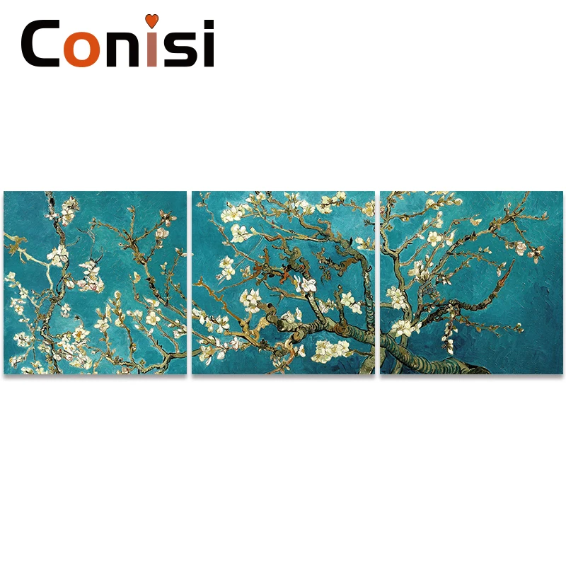 Conisi 3 панели Ван Гог жизнь Счастливое дерево постер картина абстрактное дерево холст Художественная живопись абрикосовый цветок Цветущая стена картинки