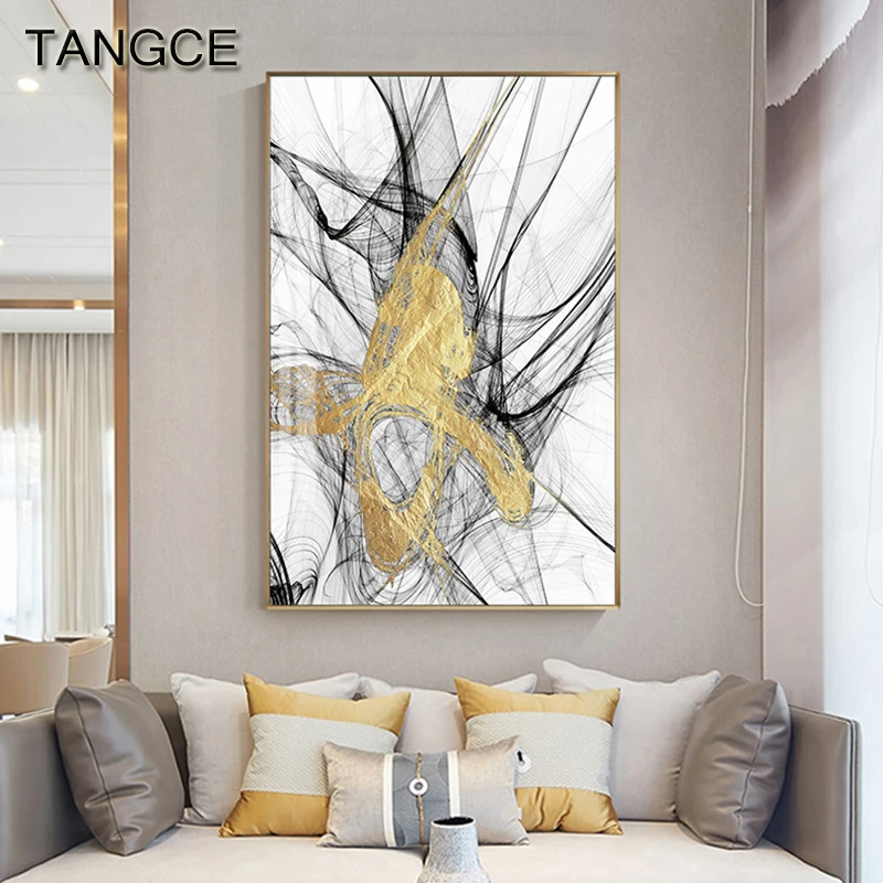 Абстрактные золотистые черные линии холст картины тройные постеры и принты модные настенные художественные картины для гостиной скандинавский домашний декор