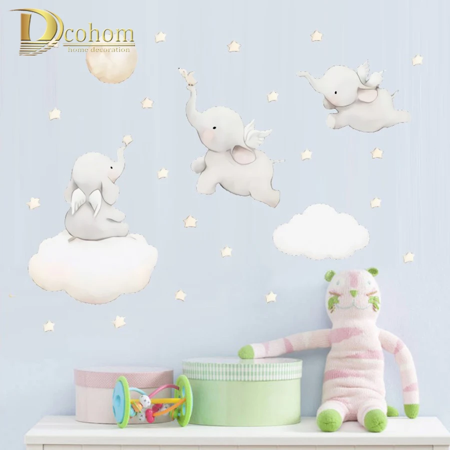Мультфильм звезды облако стикер на стену s слон наклейка в виде животного детская комната украшение скандинавском стиле детские виниловые ...