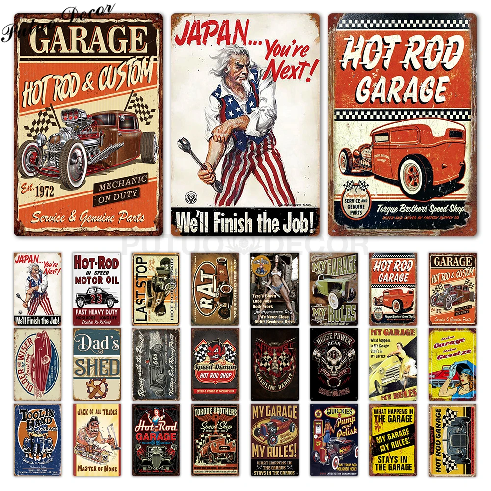 С гаражной тематикой металлический дощечка с надписью металлическая винтажная жестяная вывеска гаражные знаки в стиле ретро мужская пещер...