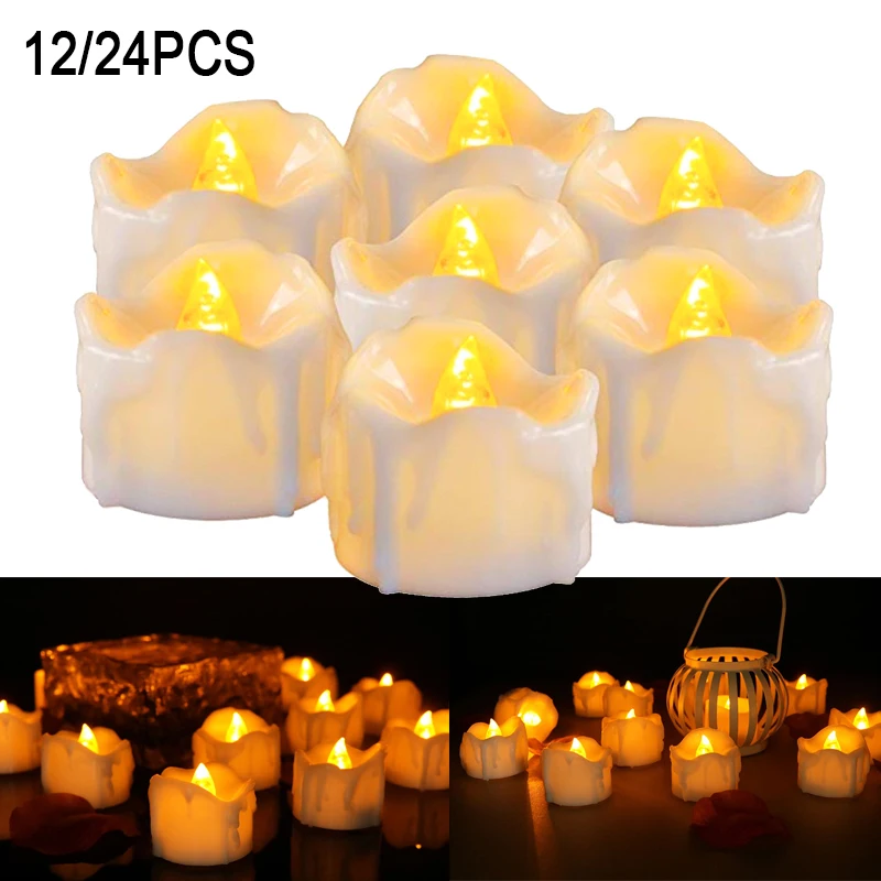 12/24 шт. светодиодный лампы в форме свечи лампы пламени мигает Чай светильник домашняя одежда для свадьбы, дня рождения украшения