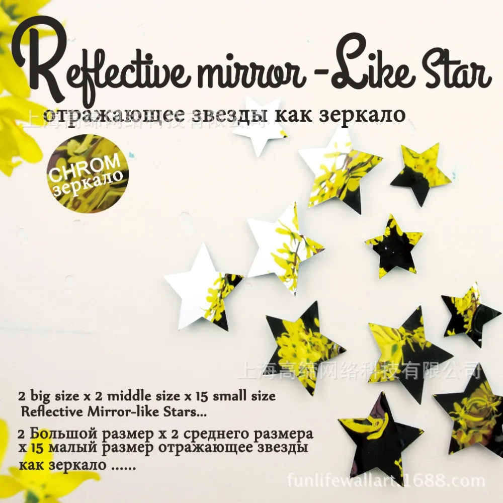 Funlife DIY звезды зеркало настенные Стикеры, съемные домашнего декора, 3 Размеры Mix 19 шт./лот Chrom Зеркало-как светоотражающие декоративные звезды