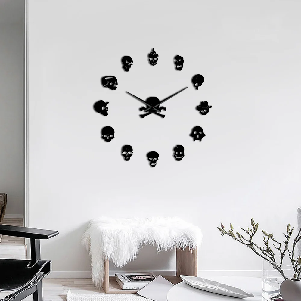 Ретро Разные головы черепа 3D DIY немой настенные часы Хэллоуин вечерние украшения для дома Скелет акриловые зеркала поверхность часы