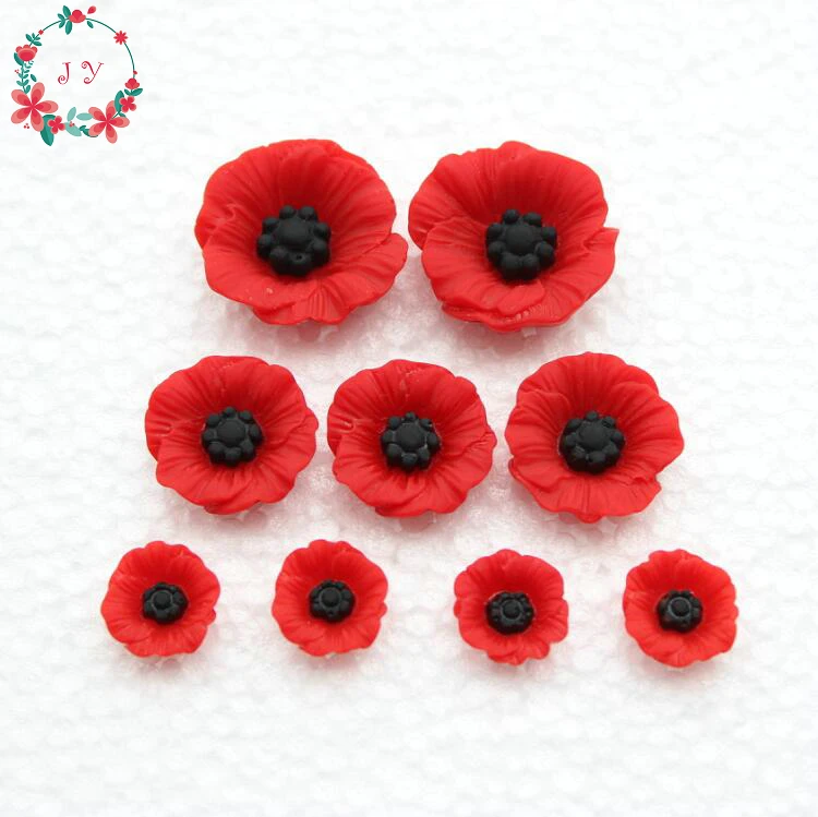Набор из 100 шт., искусственный цветок красного мака, кепка с плоским основанием для украшения дома, 12-23 мм