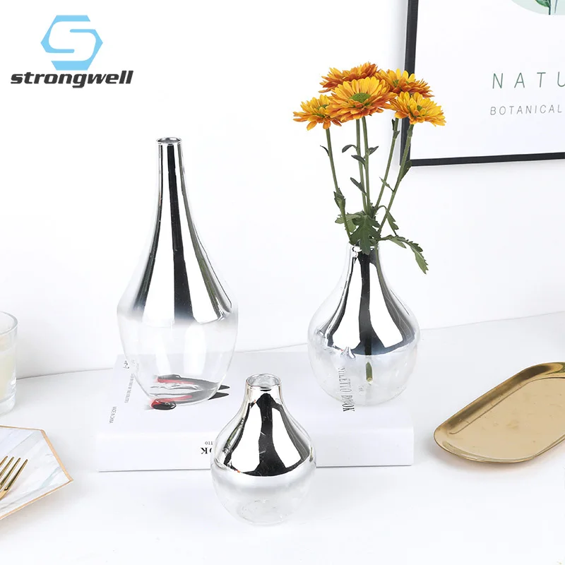Strongwell, скандинавские градиентные серебряные стеклянные вазы, ваза для цветов, гидропонная настольная подставка для растений, аксессуары дл...
