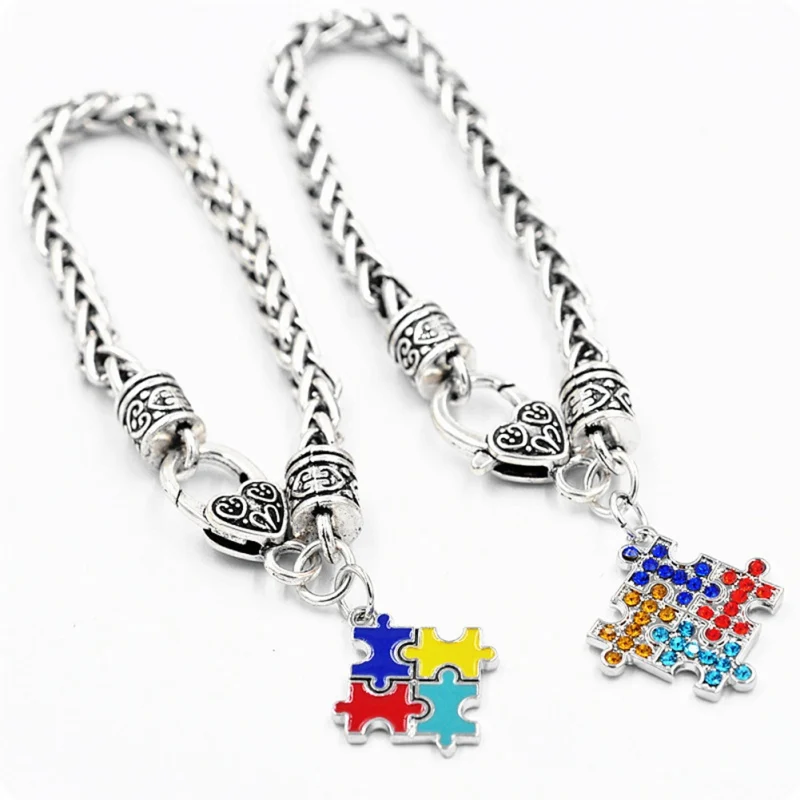 Аутистическое понимание красочная головоломка квадратная эмалированная подвеска браслет Детский пазл браслет "аутизм"