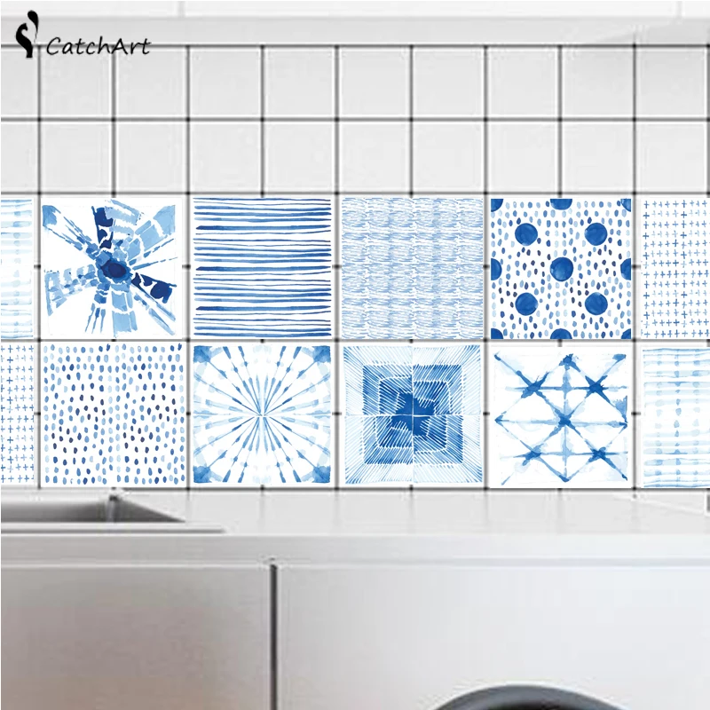 Синие мозаичные наклейки на стену, наклейки на талию, наклейки на стену, кухонные наклейки на талию, клейкие, для ванной, туалет, водонепроницаемые, ПВХ обои