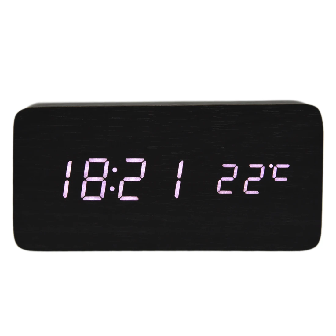 Горячая Распродажа-【голосовое управление календарь термометра】прямоугольный деревянный светодиодный цифровой будильник USB/AAA черный деревянный белый светодиодный