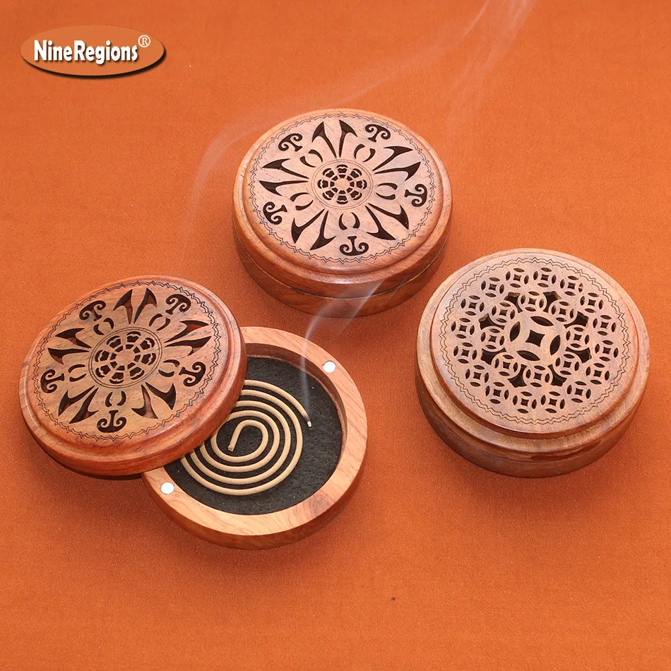 Новый стиль 4-2Hr катушка ладан круглая горелка коробка духи домашний путешествия портативный деревянный кадило палисандр держатель пластин...