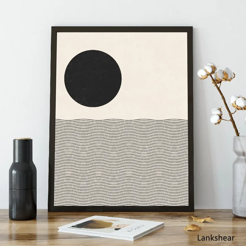 Современные Геометрические плакаты с принтом океанских волн середины века, деревянные блоки, стильные иллюстрации, нейтральные цвета, домашний декор для стен