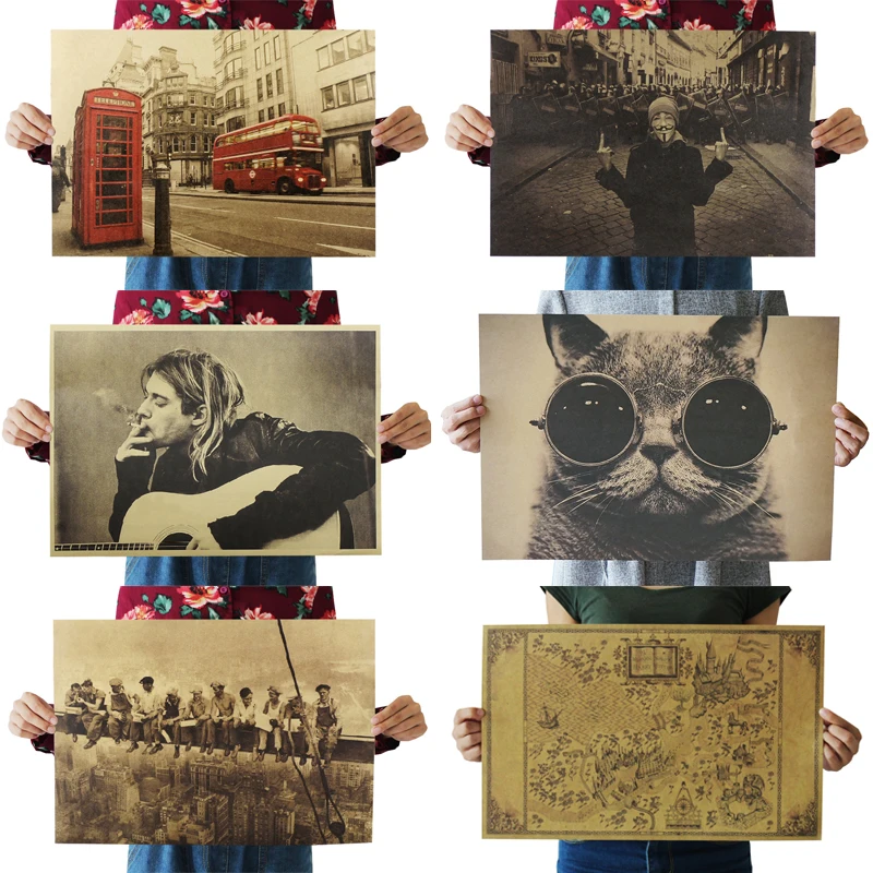 DLKKLB рок-н-ролл музыкальный постер известный рок-певец индивидуальное украшение бара комнаты крафт-бумага 51,5X36 см стикер на стену