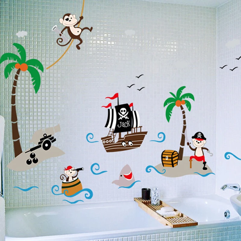 Милые съемные обои Милая обезьяна пират рисунок-Наклейка на стену детская комната окружающей среды
