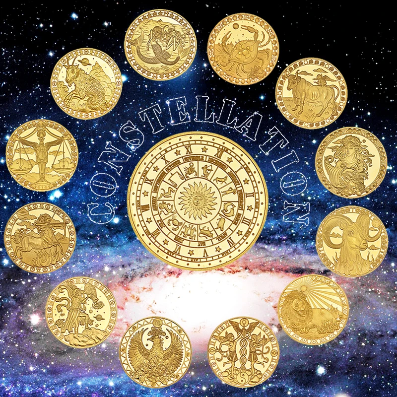 WR 12 созвездия зодиака позолоченная Коллекционная монета Оригинальные монеты набор держатель наградная монета креативный подарок Прямая д...