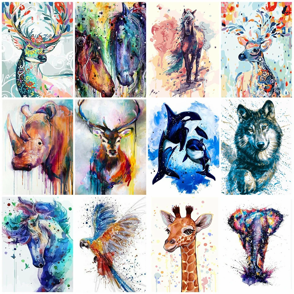 AZQSD взрослый Сделай Сам Рисование по номерам на холсте животное ручной работы подарок акриловые краски по номерам мультфильм домашний деко...