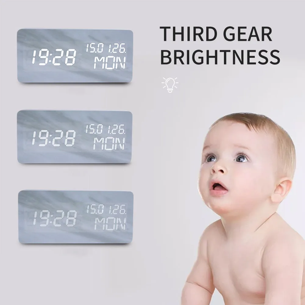 Цифровой дисплей мраморная Вена квадратный Голосовое управление спальня USB Питание светодиодные прикроватные электронные часы на батарей...