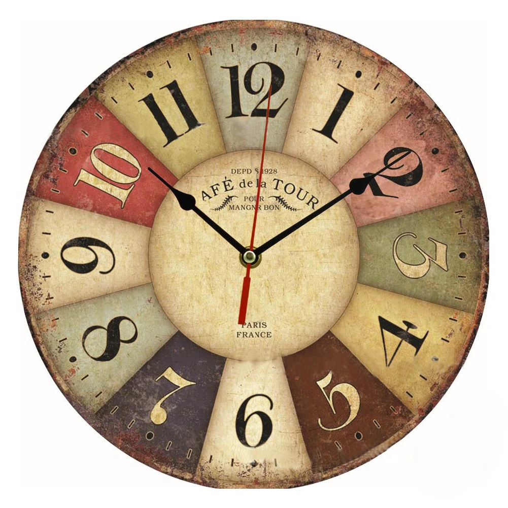 Горячие креативные деревянные настенные часы современный европейский стиль винтажный деревенский, потрепанный, шикарный домашний офис ка...