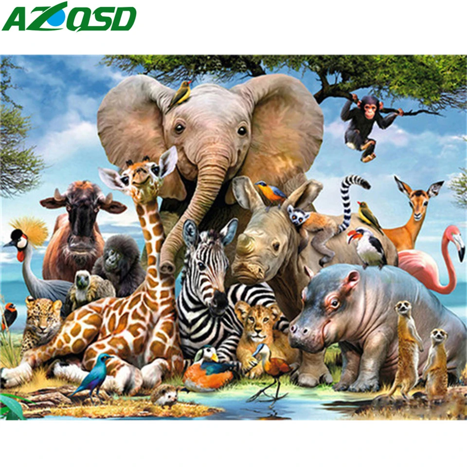 AZQSD раскраска без рамки по номерам на холсте, животные, сделай сам, ручная работа, раскраска для взрослых по номерам, слон, акриловая краска, уникальный подарок