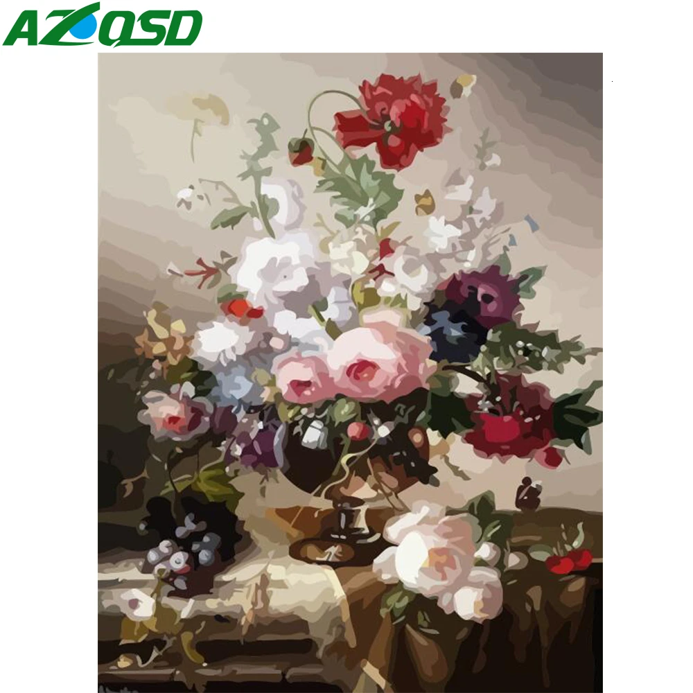 AZQSD раскрашивать взрослые краски по номерам цветы акриловые краски украшение дома Раскраска по номерам на холсте ваза ручная краска ed подар...