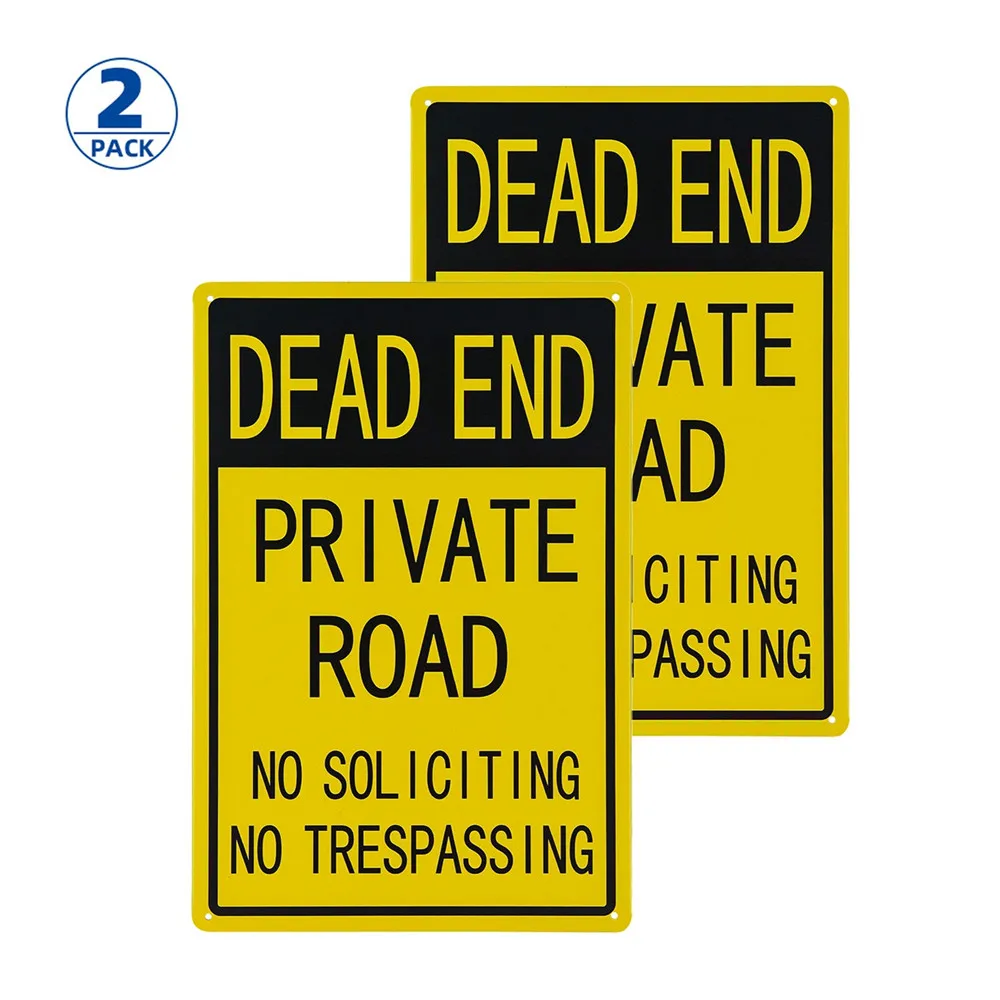 2 шт Винтаж жестяная вывеска, Легенда "тупик частной дороги без пересечение границы", 12 "(высота) x 8" в ширину, черный на желтом цвете