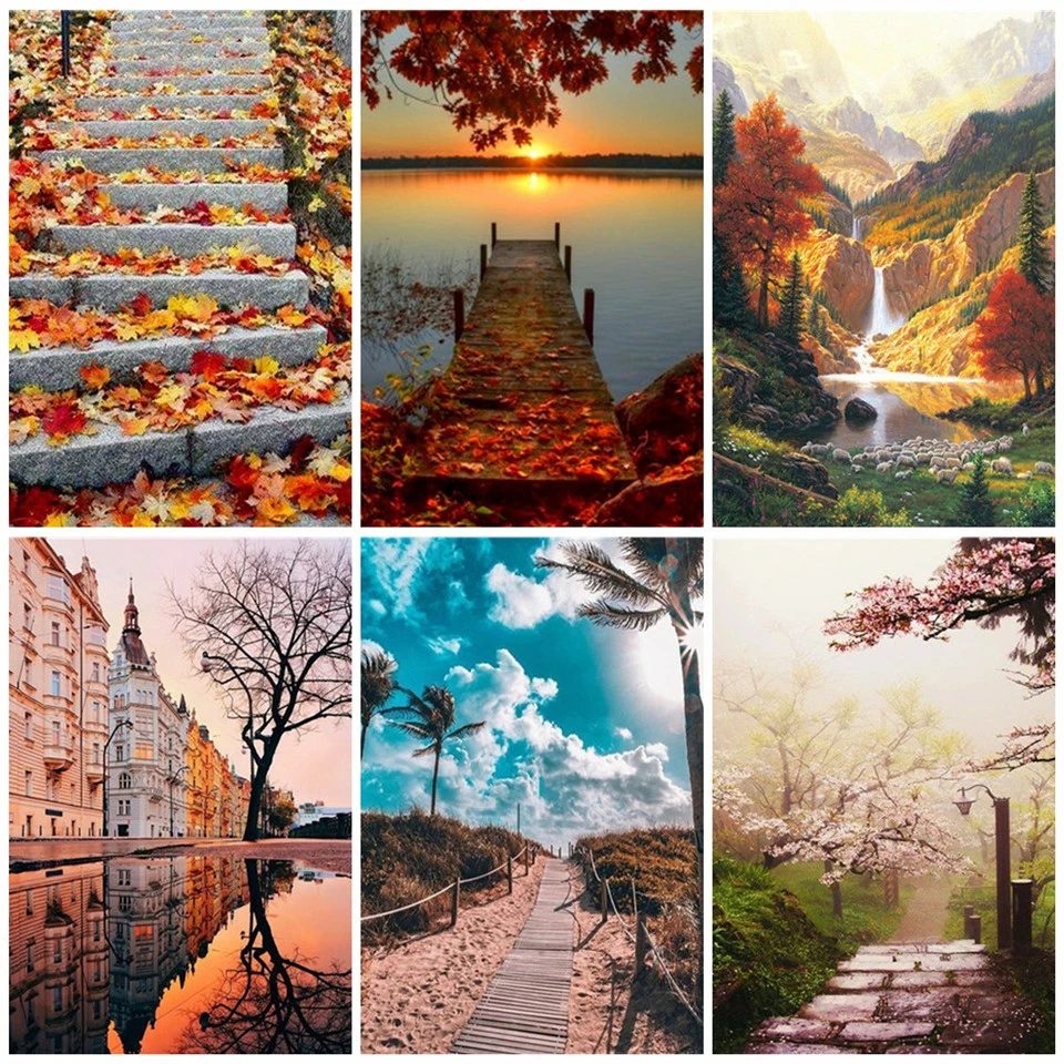 AZQSD DIY Раскрашивание по номерам холст наборы декорации стены Искусство акриловые краски Раскрашивание по номерам осенние наборы для украше...