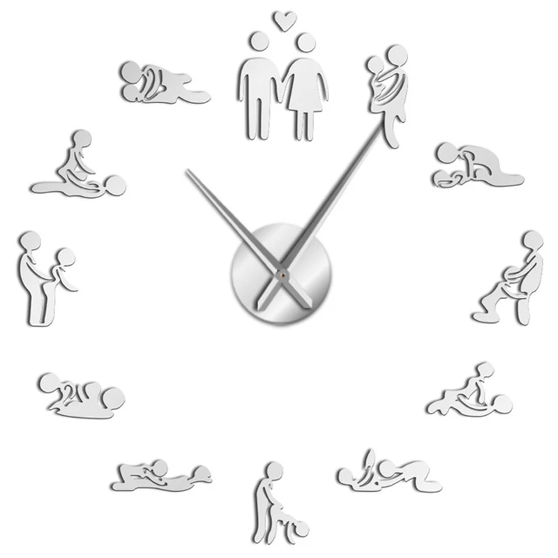 Сексуальная позиция немой настенные часы одной игры 3D Diy часы для взрослых комнаты украшения из акрила большие часы