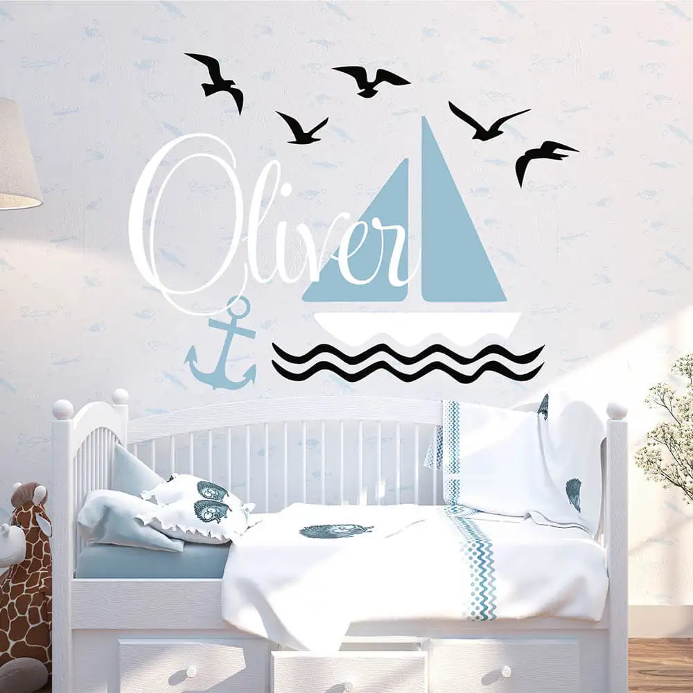 Парусник и Чайка Пользовательские настенные детская морская тема стены Стикеры для комнаты мальчика 755C