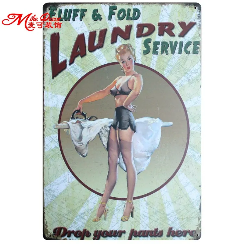 [Mike86] Прачечная Услуги Lady Олово Вход Металл роспись Плакат Античная Офиса Партии магазин ретро Настенный декор 20x30 см aa-689