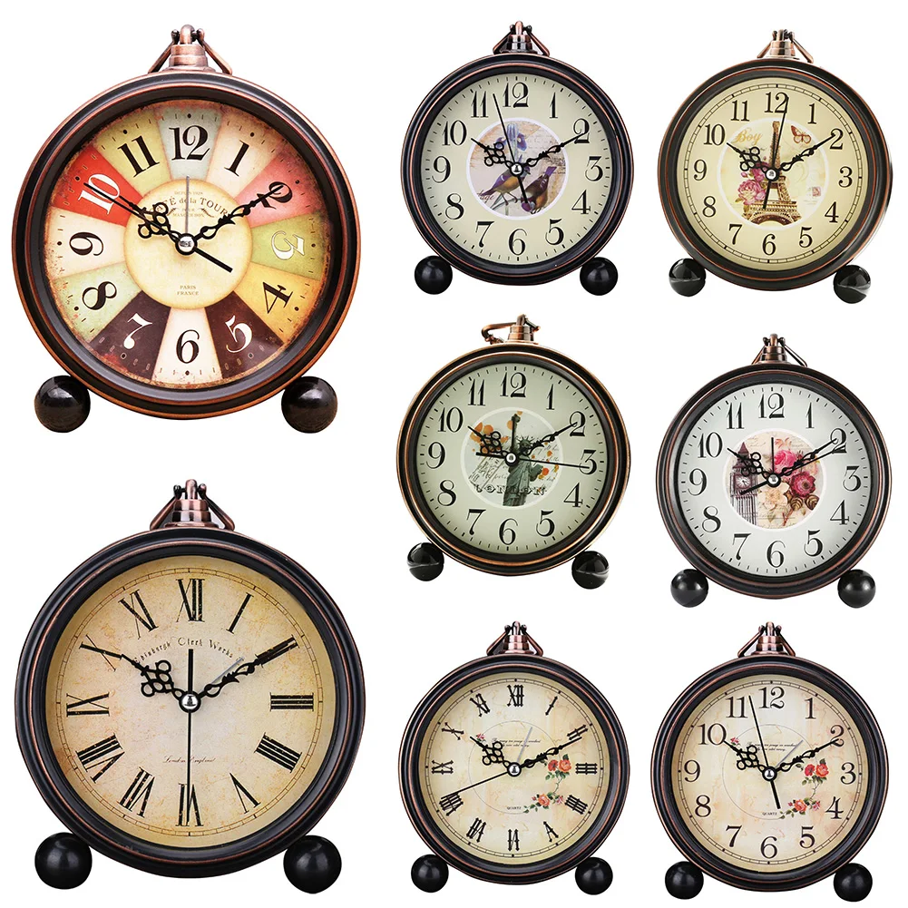 Ретро тихий будильник круглые офисные римские цифры европейский стиль для дома Современные винтажные настольные стеклянные линзы на батар...