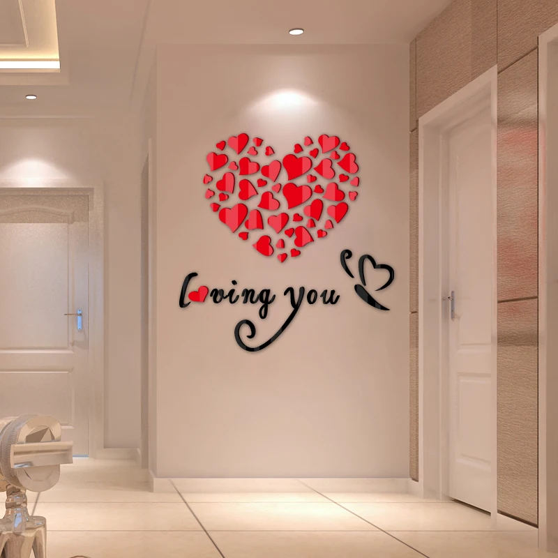 В Горячая Распродажа стикеры стены акриловое зеркало любовь diy стикер украшения дома 3d наклейки Европа Гостиная wall art