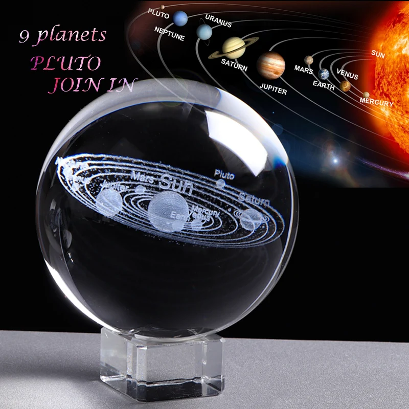 3D Солнечный Системы хрустальный шар планеты Стекло шар для украшения дома аксессуары девять планет Стекло Глобус Пособия по астрономии Сфе...