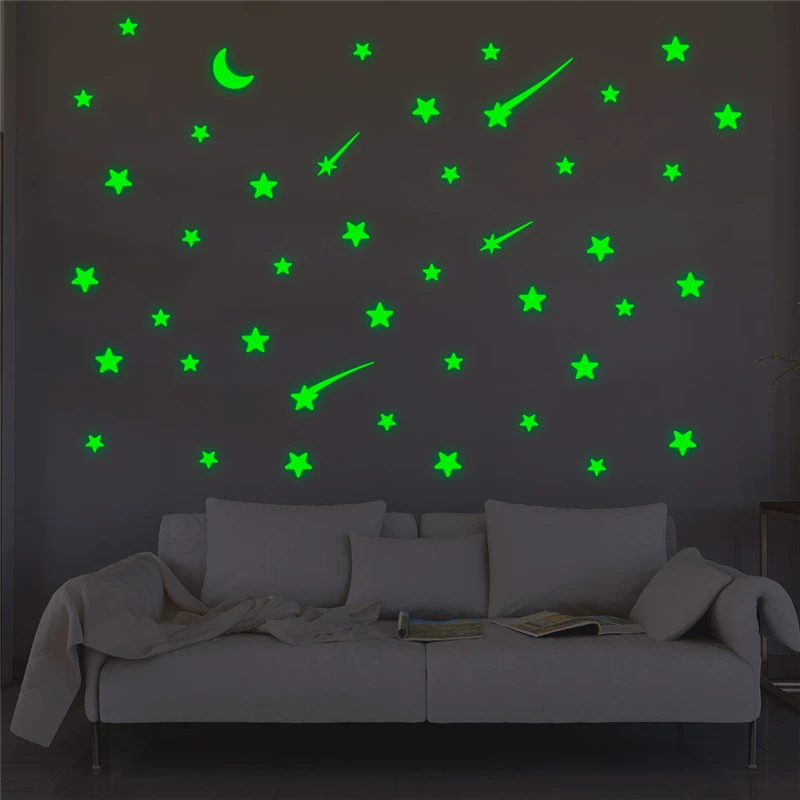 Креативные метеоритные Звезды Луна светящиеся наклейки на стену для детской комнаты домашний декор зеленый светится в темноте флуоресцент...