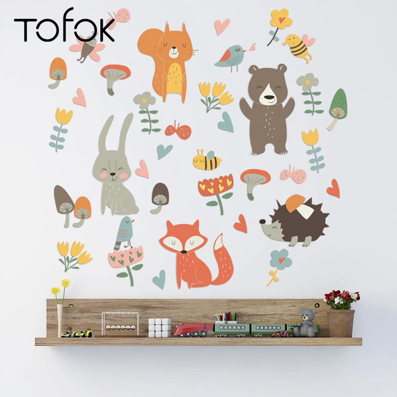 Tofok лесных животных вечерние стены Стикеры Ins Лисий мех кролика детская комната Self-клейкие переводные наклейки сделай сам домашний Фоновые ...